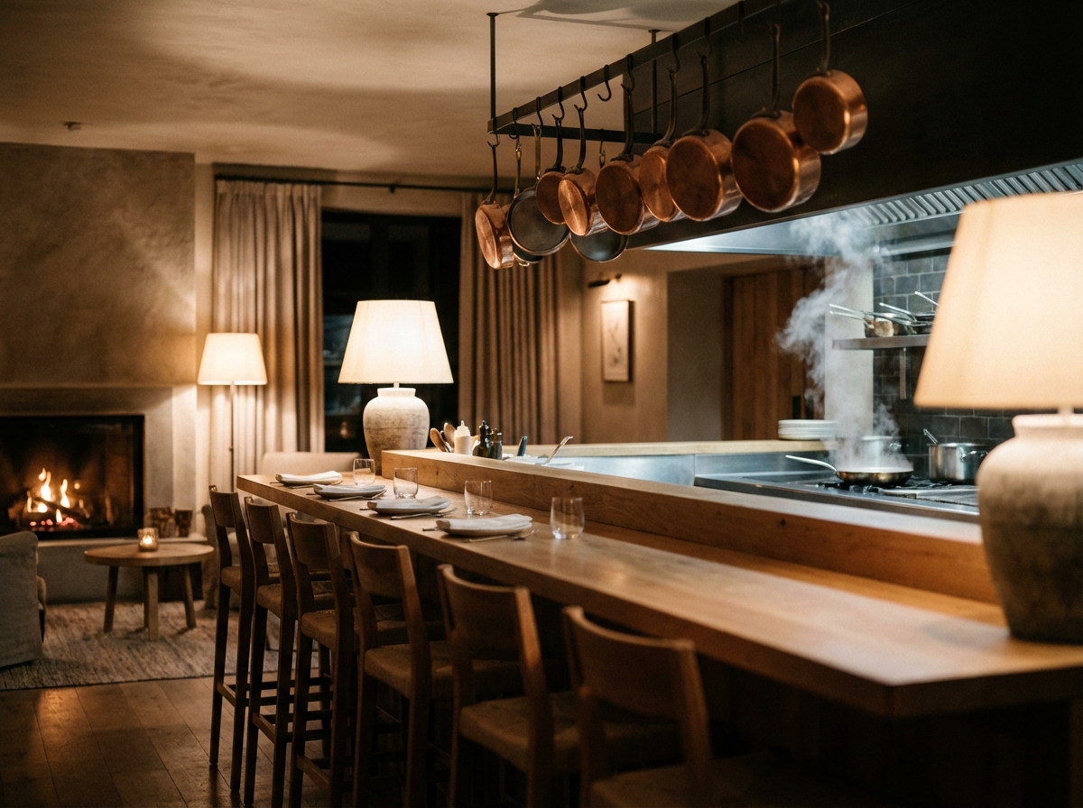 グラスの音や会話、店内に流れる音楽を感じながら過ごせる特等席です。