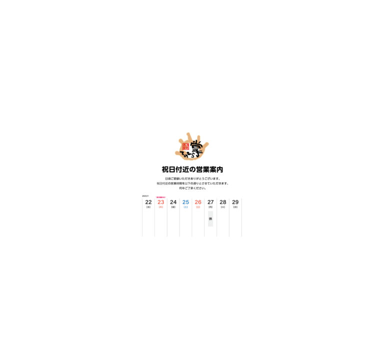 11月の祝日「勤労感謝の日」を含むカレンダーをご用意いたしました。